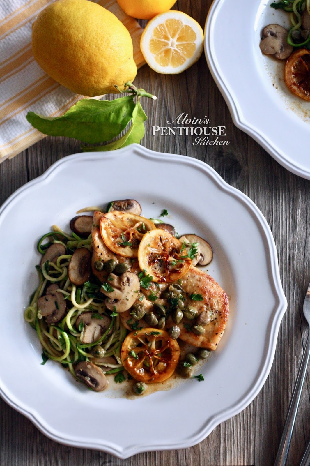 Chicken Piccata isn't a dish you would typically find in many Italian restaurants. My first encounter was at the Cheesecake Factory in San Francisco, a dish whose intense flavors soon grew into a craving that compelled me to try making at home. My adapted version is slightly lighter, however, without the addition of cream to the sauce. For an extra punch, I charred some lemon slices, which not only gives depth to the sauce but also looks gorgeous on the plate. But if you are really strapped for time, you can altogether skip the charred lemons and omit the dredging for the chicken breast. Just don't ever skip pounding the chicken breast though, as this will ensure even cooking and help making this dish ready in a flash. Enjoy!